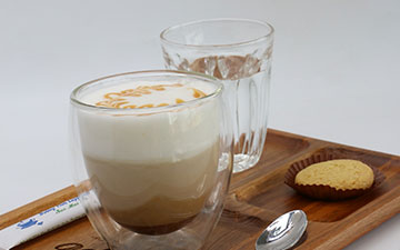 拿铁咖啡就是在刚刚做好的意大利浓缩咖啡中倒入接近沸腾的牛奶。事实上,加入多少牛奶没有一定之规,可依个人口味自由调配。